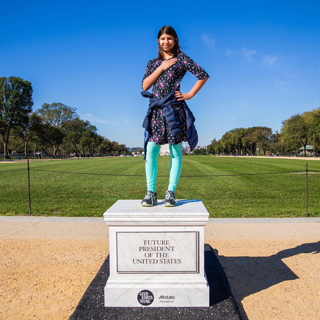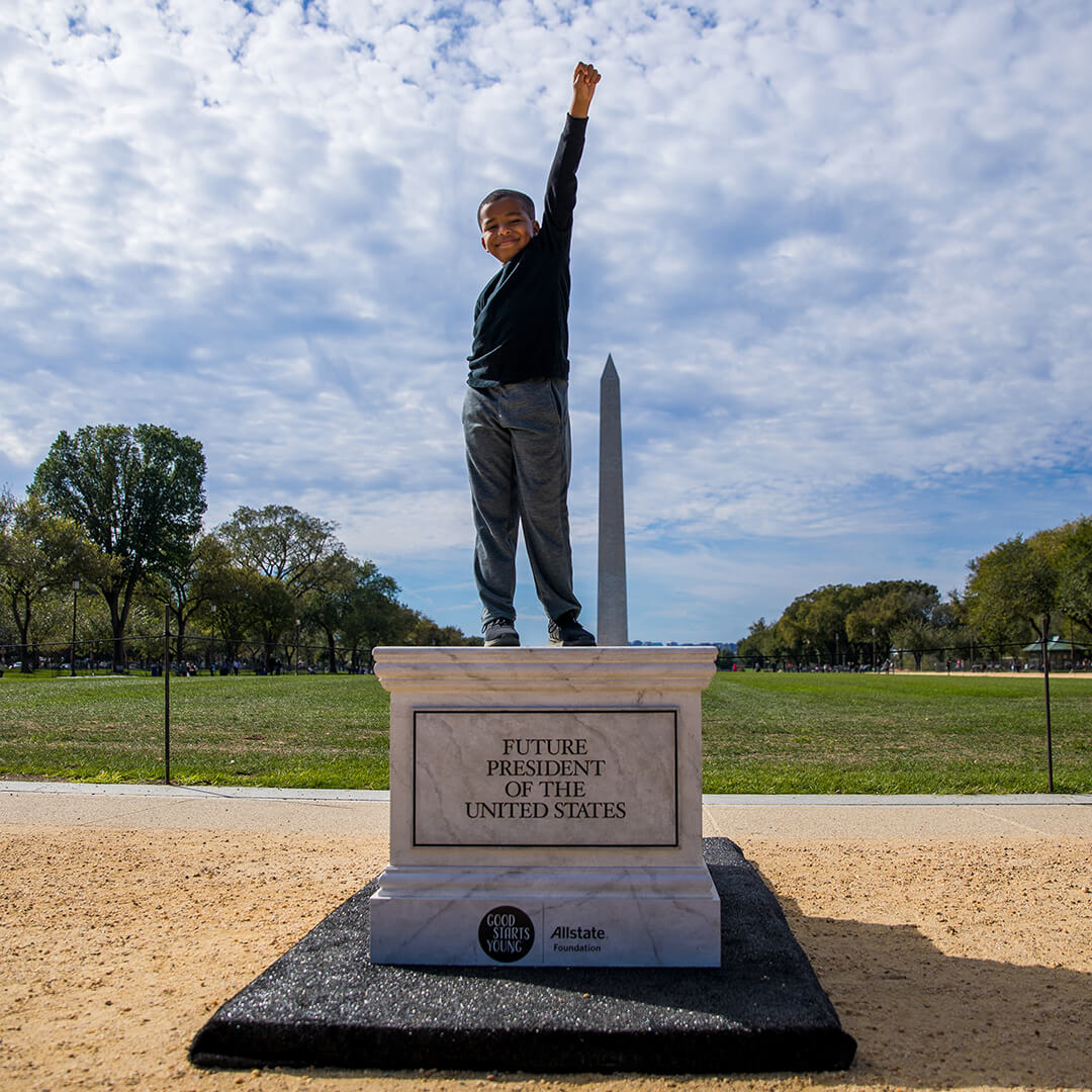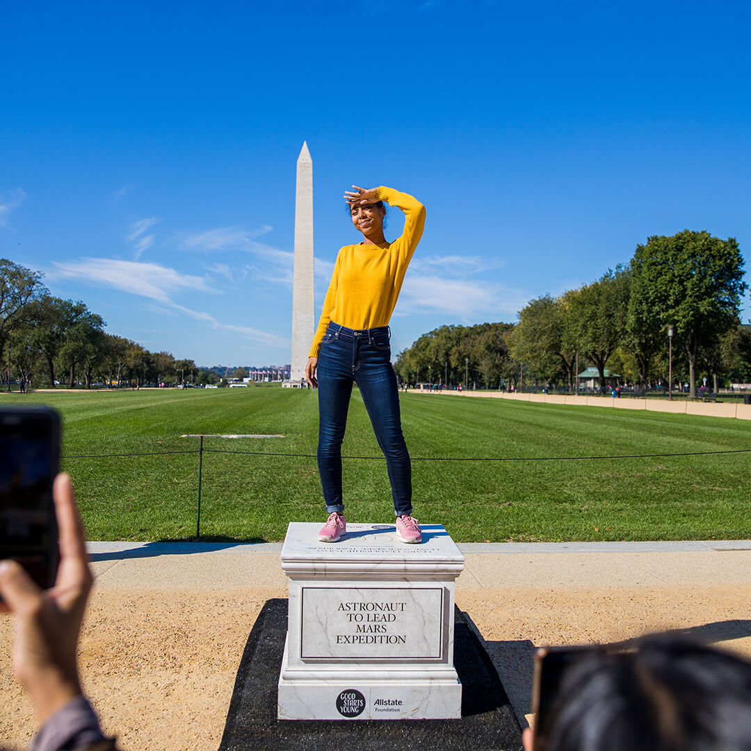Good Starts Young is a program supported by the Allstate Foundation. It teaches young people the skills they’ll need to become future leaders. We created empty pedestals with future achievements engraved on them and placed them at the National Mall in Washington D.C., as students visited our nation's capital.