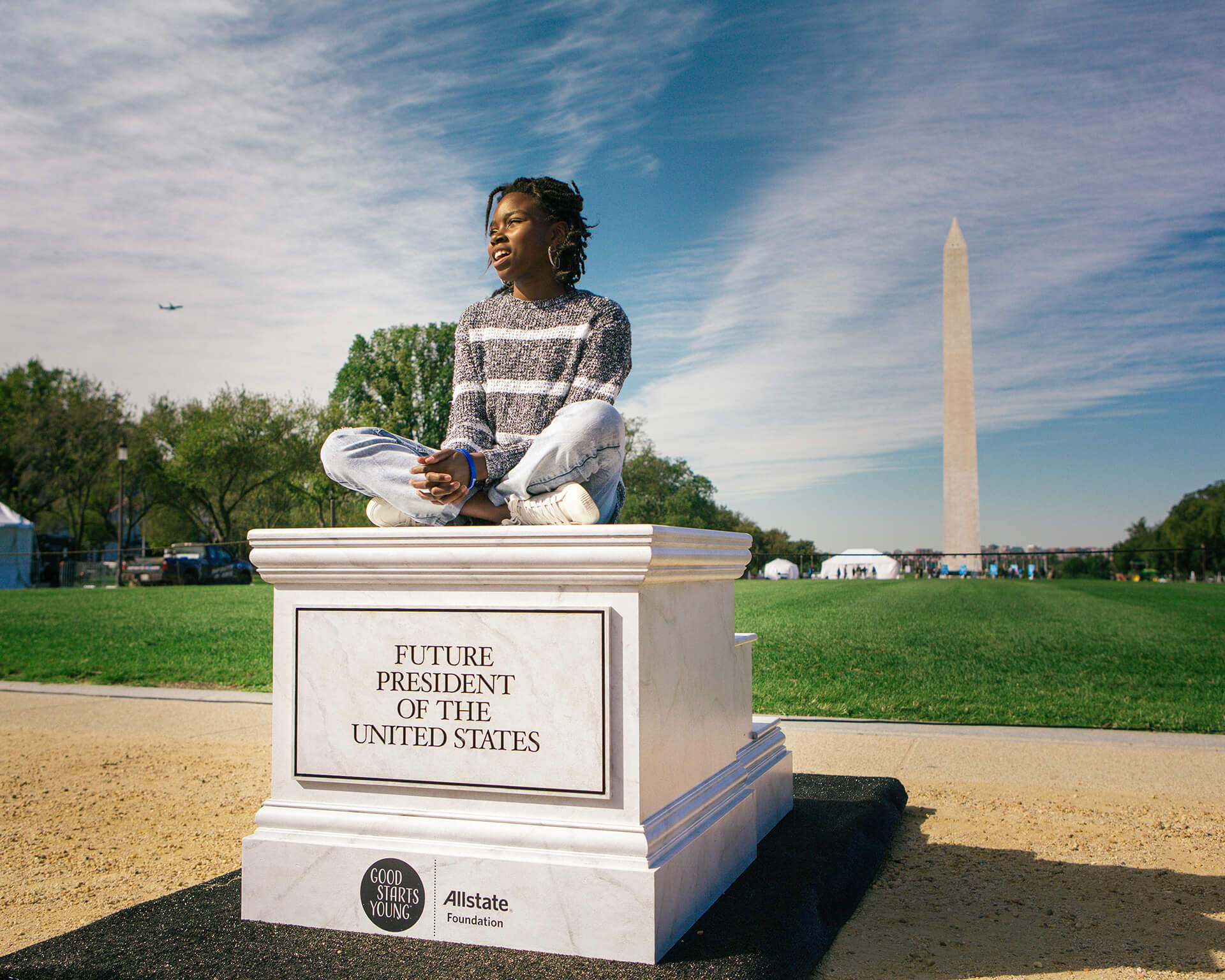 Good Starts Young is a program supported by the Allstate Foundation. It teaches young people the skills they’ll need to become future leaders. We created empty pedestals with future achievements engraved on them and placed them at the National Mall in Washington D.C., as students visited our nation's capital.
