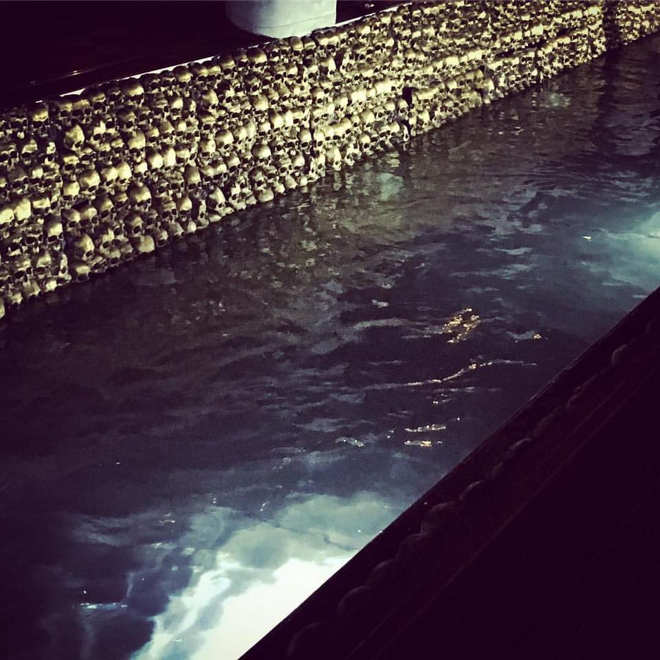 Guests were greeted by the sight of the pool transformed into a sunken catacomb, complete with over 680 square feet of golden skull panels that glimmered in the dim light. The underwater photo booth, made possible by Bacardi, added a touch of modern magic to the eerie atmosphere, allowing guests to capture memories of the night in a truly unique setting.